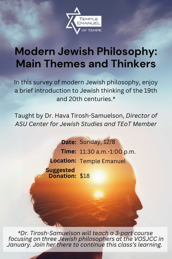 11:30 am | Adult Education: Jewish Philosophy - Register here