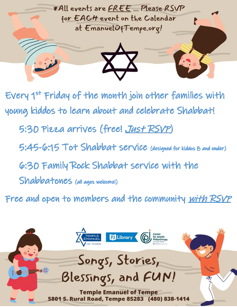 5:30 pm | First Friday Tot Shabbat & Family Nosh - RSVP here