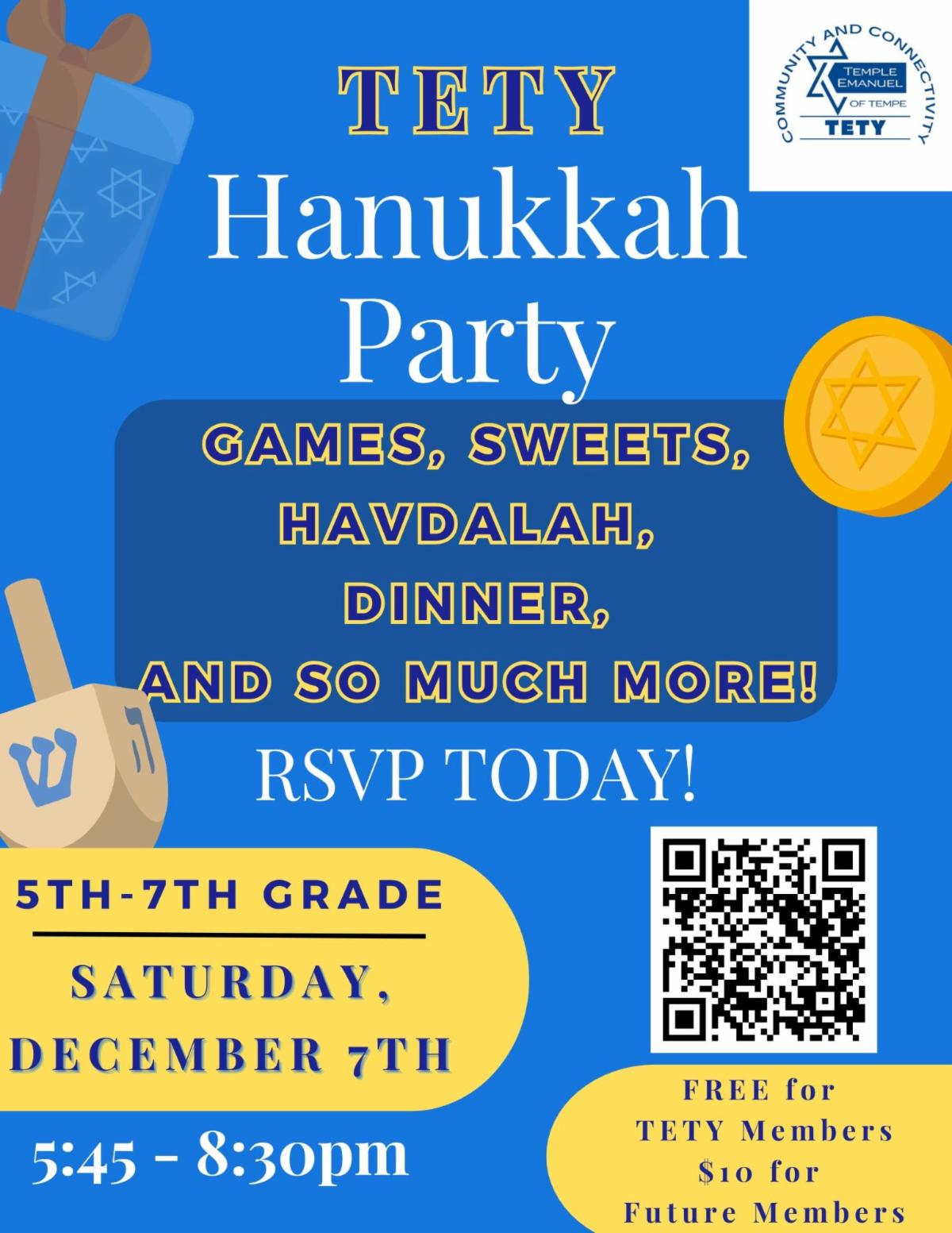 5:45 pm | TETY Hanukkah Party - register here