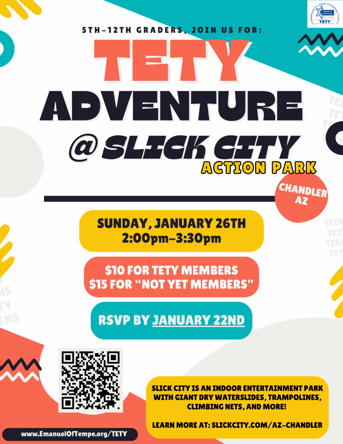 We have partnered with the East Valley JCC through their East Valley JCC Qualified Charitable Organization and Temple Emanuel will receive an 18% grant of the amount donated back to us for us to use toward our expenses. For Temple Emanuel of Tempe to be eligible for the grant, donate below or write “Tax Credit Code TE” on the memo line of your check. These are tax credits, not a deduction off your income. If you donate anytime through April 15th, you can get dollar-for-dollar directly off your AZ State Income Tax Bill!