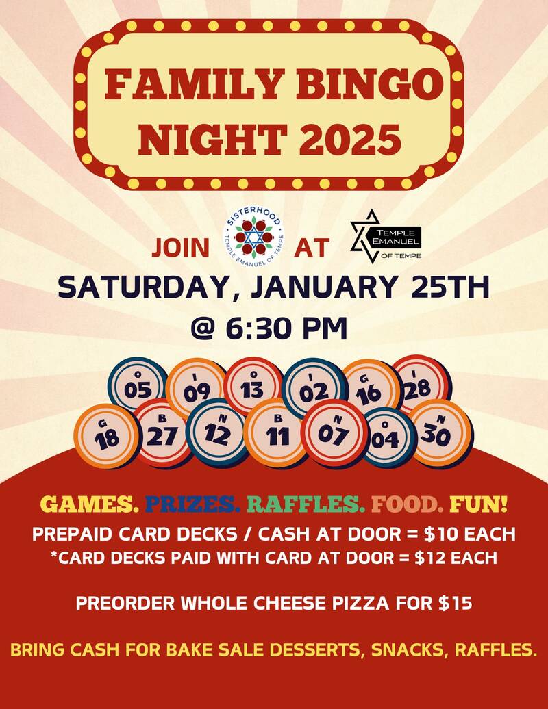 6:30 pm | Family Bingo with Sisterhood - RSVP here