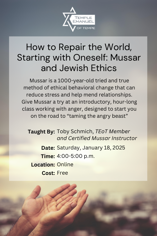 4:00 pm - Online Only | How to Repair the World, Starting with Oneself: Mussar and Jewish Ethics. Register here