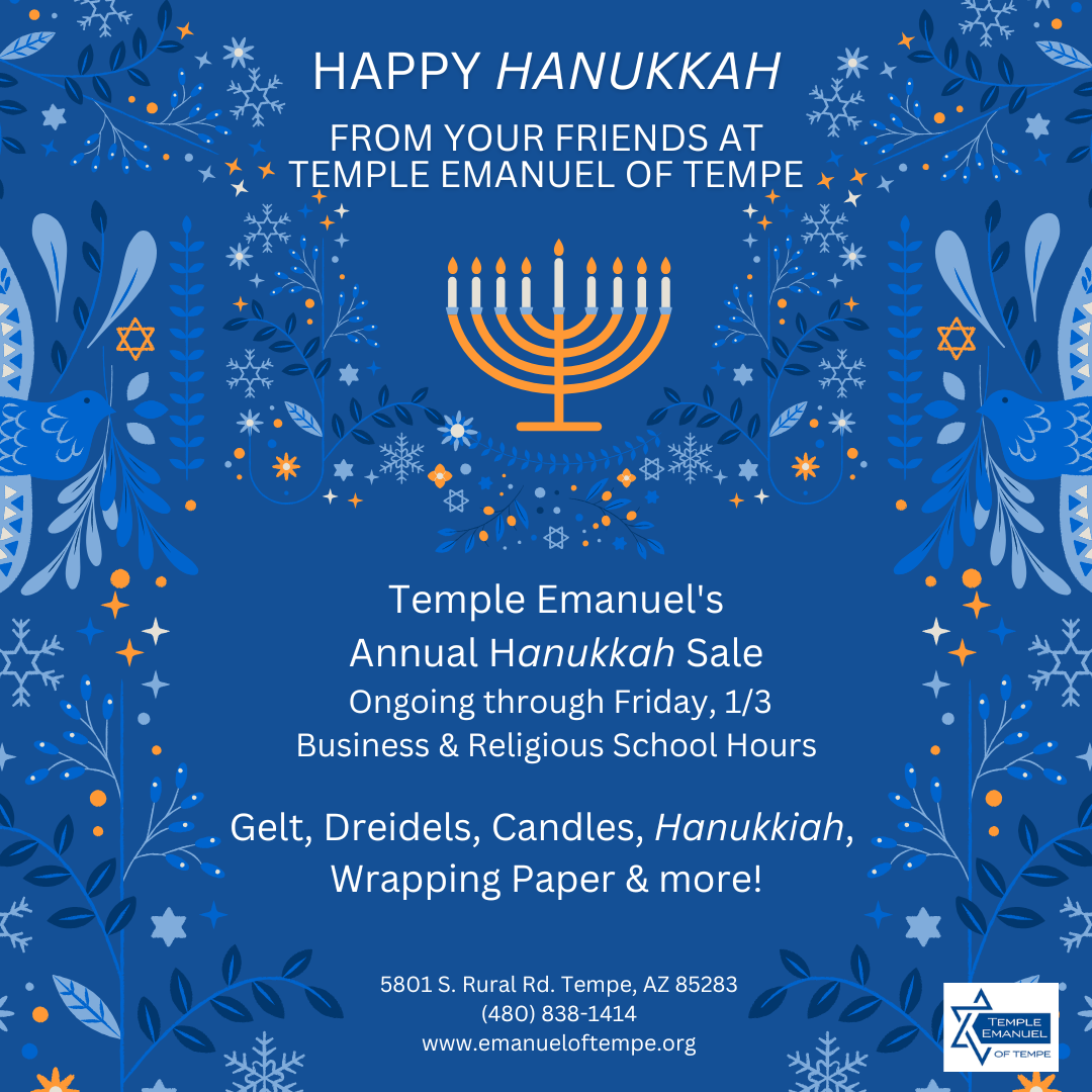We have partnered with the East Valley JCC through their East Valley JCC Qualified Charitable Organization and Temple Emanuel will receive an 18% grant of the amount donated back to us for us to use toward our expenses. For Temple Emanuel of Tempe to be eligible for the grant, donate below or write “Tax Credit Code TE” on the memo line of your check.