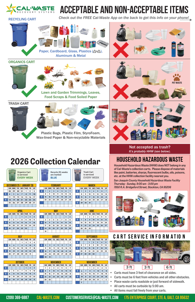 Residents may place up to four cubic yards of material at the curb. Accepted items include furniture, carpet, mattresses, clothing beyond reuse, and electronics. Please ensure all materials are neatly stacked and placed at the curb by 6:00 a.m. on collection day.