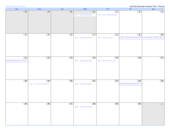 AZ Trout Unlimited & Chapters, Arizona Flycasters Club and several other area fishing and conservation calendars