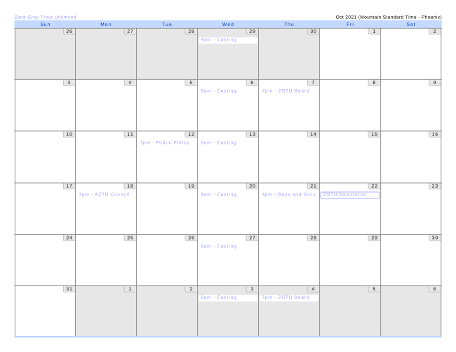 AZ Trout Unlimited & Chapters, Arizona Flycasters Club and several other area fishing and conservation calendars