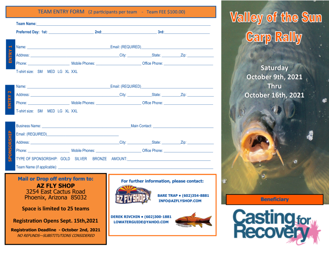 The AZ Flyshop is organizing a Carp Fly Fishing Rally to benefit Casting for Recovery. CfR is a non-profit organization that promotes healing through fishing and nature for women recovering from breast cancer.