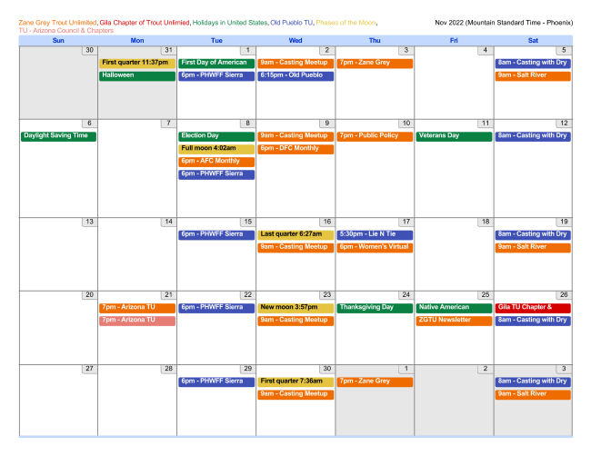 AZ Trout Unlimited & Chapters, Arizona Flycasters Club and several other area fishing and conservation calendars