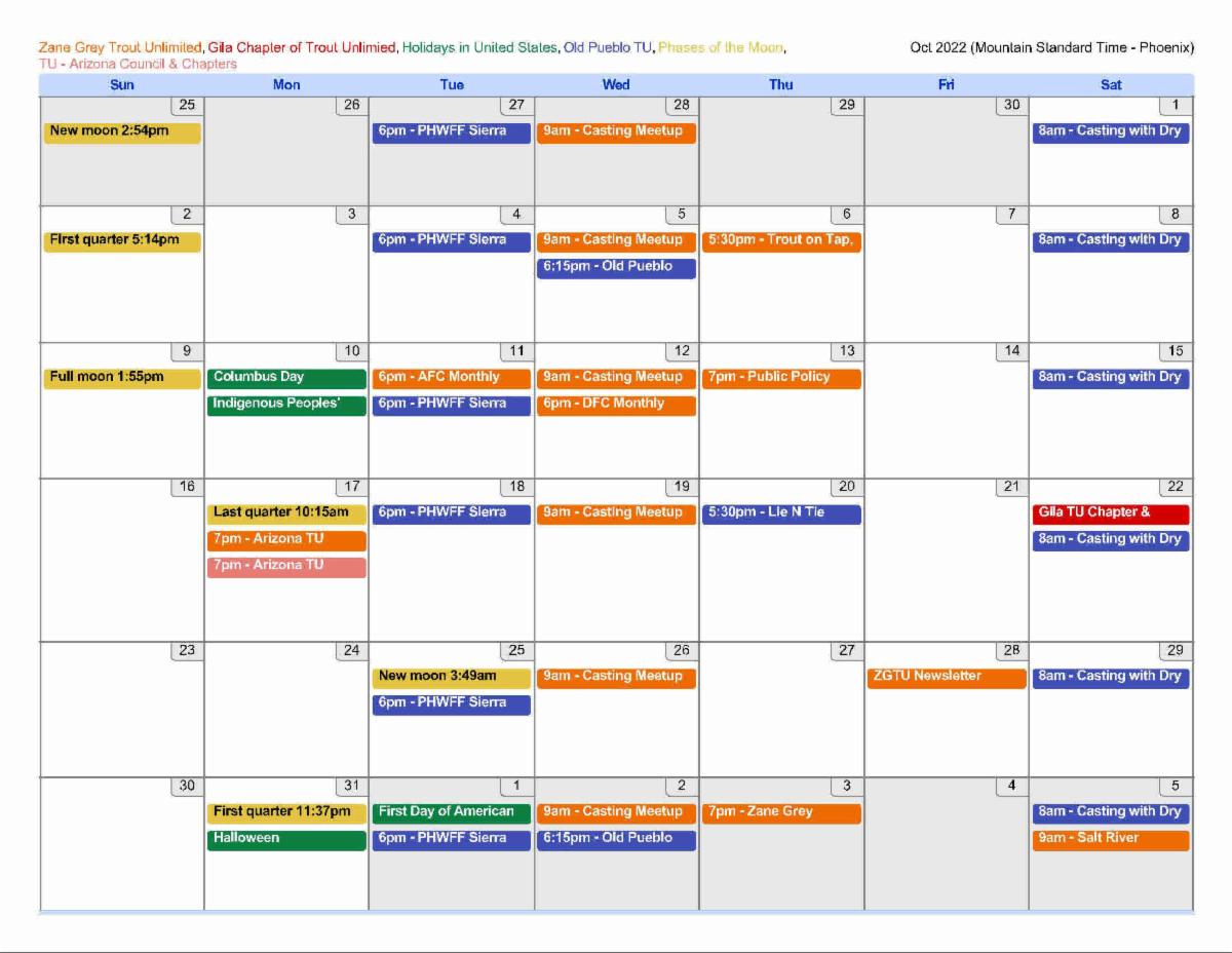 AZ Trout Unlimited & Chapters, Arizona Flycasters Club and several other area fishing and conservation calendars