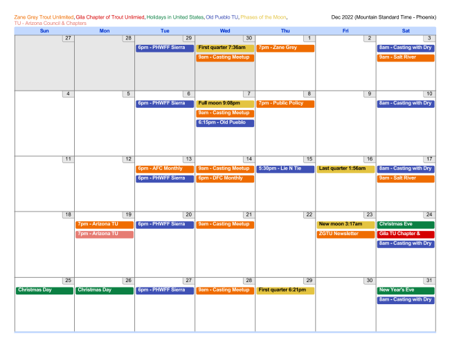 AZ Trout Unlimited & Chapters, Arizona Flycasters Club and several other area fishing and conservation calendars