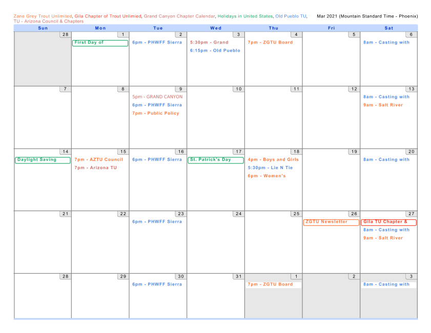 AZ Trout Unlimited & Chapters, Arizona Flycasters Club and several other area fishing and conservation calendars