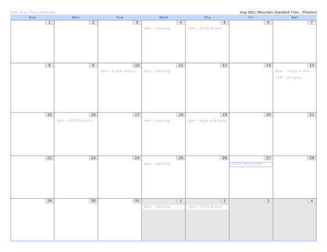 AZ Trout Unlimited & Chapters, Arizona Flycasters Club and several other area fishing and conservation calendars