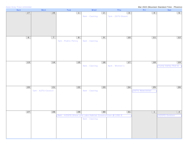 AZ Trout Unlimited & Chapters, Arizona Flycasters Club and several other area fishing and conservation calendars