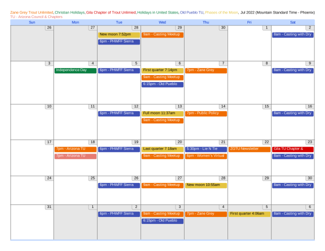 AZ Trout Unlimited & Chapters, Arizona Flycasters Club and several other area fishing and conservation calendars