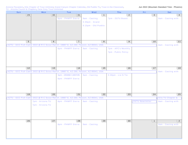 AZ Trout Unlimited & Chapters, Arizona Flycasters Club and several other area fishing and conservation calendars