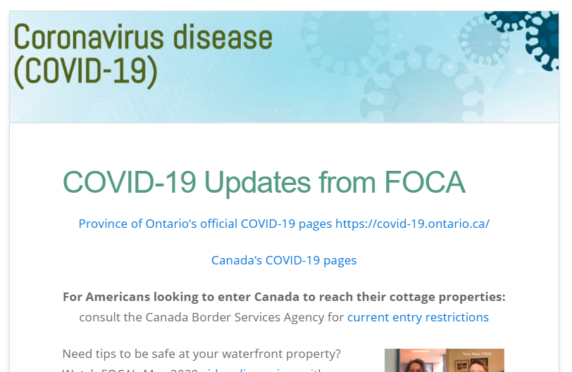 In light of the ongoing pandemic, FOCA staff continue to work away from our Peterborough office, to physically distance.