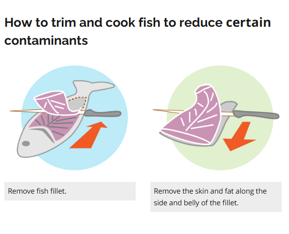 The annual Guide to Eating Ontario Fish now includes information about PFAS warnings among other contaminants. The digital guide includes tips on trimming and cooking to reduce certain contaminants (source of the image). Click to access the interactive fish map, and read 'more'.