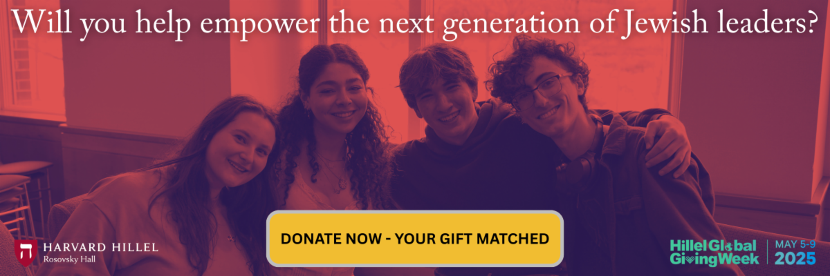 Dear fellow members of Harvard's Jewish community, | It's been a wonderful Hillel Global Giving Week so far. To those of you who have already contributed, we can't thank you enough for your support. To everyone else, remember— thanks to Hillel International and our amazing community of parents, any gift you make to Harvard Hillel through Friday night will be matched dollar-for-dollar up to the first $25,000. | |