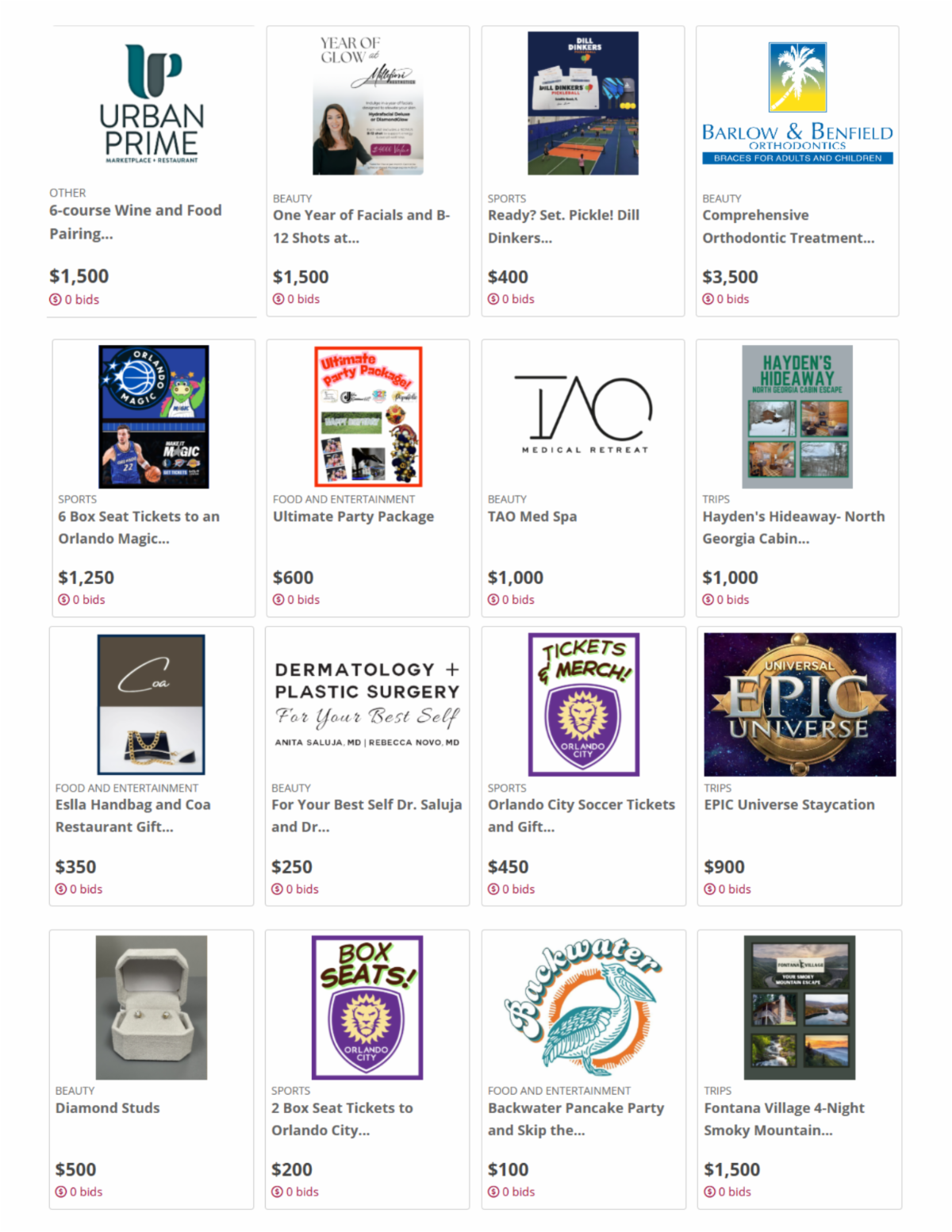 From family experiences and dining packages to luxury items, spa treatments, sporting events and even braces!, take a sneak peek below and get ready to start bidding on Monday!