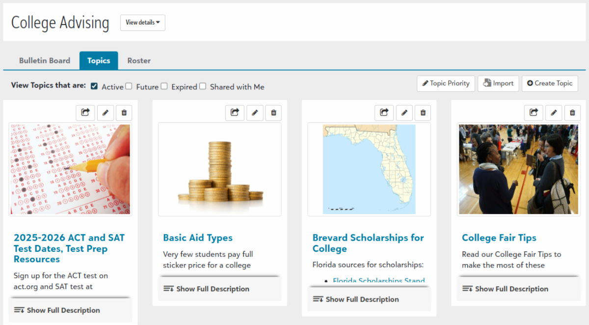 | | Colleges and universities are visiting cities and towns near Melbourne and offering virtual webinars to learn more about their institutions and college process. Check the College Advising Page to find out about what some of the IVY’s and top tier schools are doing. | |