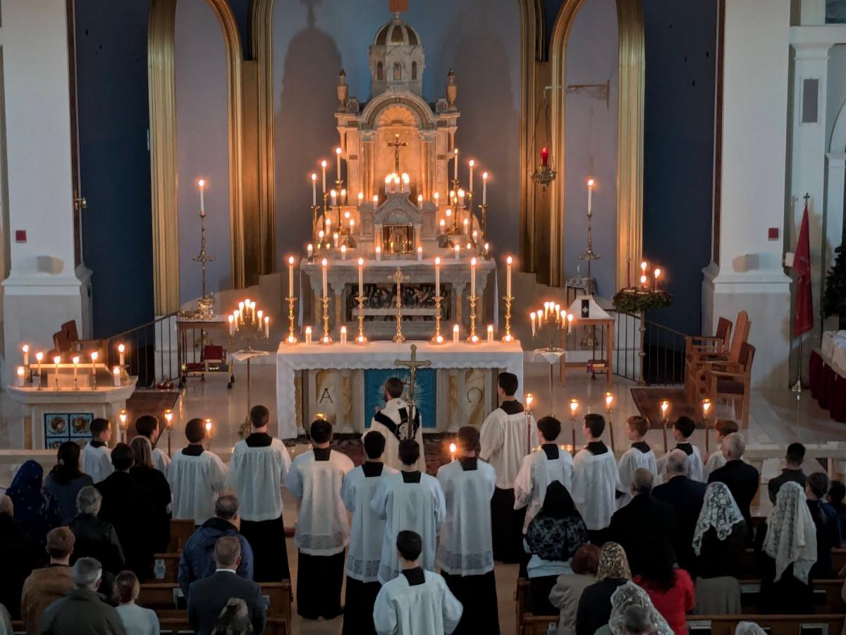 What is a “Rorate Mass”? The Rorate Caeli Mass is a votive Mass of the Blessed Virgin Mary offered on the Saturdays of Advent. Traditionally the Mass is offered in the dark hour right before sunrise. Physical darkness in the church symbolizes a world darkened by sin and in need of the Savior. The liturgy illuminated (almost) solely by candles, reminds us of the prophets and John the Baptist, who gave witness to the true light coming into the world (see John 1:9). The Holy Sacrifice will be offered similarly to the 9am Sunday Mass. The Eucharistic Prayer will be said aloud in Latin, but without the microphone. The darkness and quieter tone facilitate a greater interior quietness and reflection on the mysteries of the Incarnation and upcoming Nativity. Come find out why this Mass is called Rorate. Experience why many since the middles ages have found this way of praying an amazing preparation for Christmas!