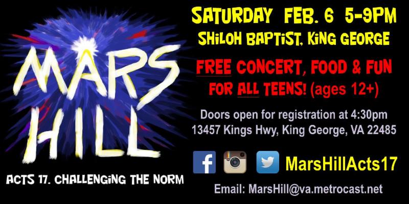 Mars Hill Acts 17 is a non-denominational youth ministry made possible by God's grace and volunteers from local churches. It is NOT associated with any org of similar name. Each event has a different Bible theme, location, guest speaker, guest band, etc. Youth leaders and parents are welcome to observe an event. Youth leaders are encouraged to participate with their group. More details and statement of faith are available upon request. Please contact us if bringing a large group or have any questions. You are welcome to share this email with your church and friends.