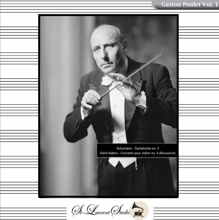 GERARD POULET Cond. RTF S.O.: ‘Rhenish’ Symphony #3 in E-flat (Schumann); Espana (Chabrier); w.MICHELE BOUSSINON: Violin Concerto #3 in b (Saint-Saens). (Canada) St Laurent Studio YSL T-1300, Live Performance, 26 July, 1956, Paris. Transfers by Yves St Laurent. (C1977)