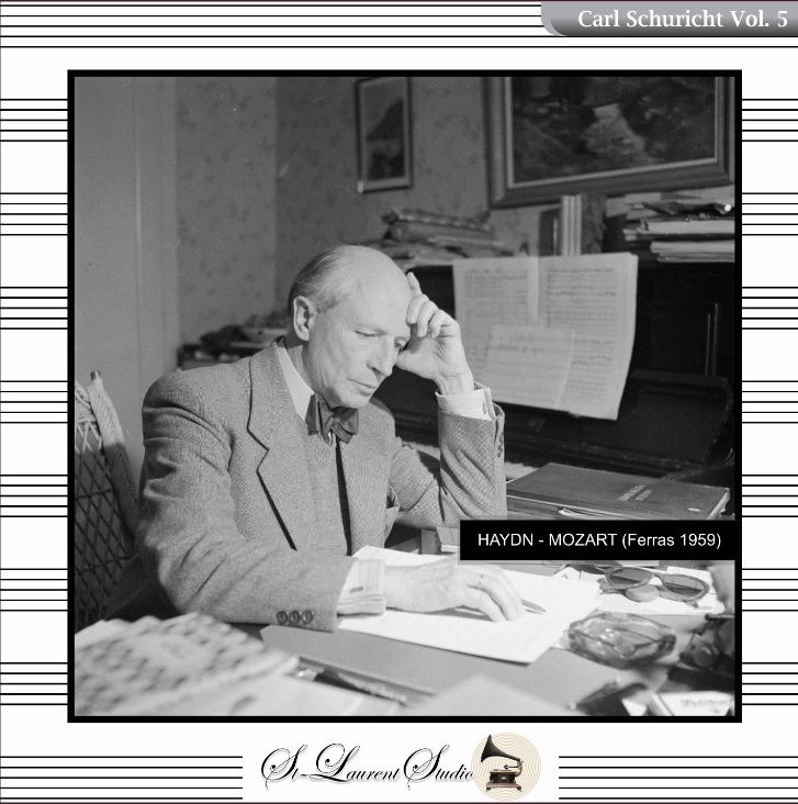 CARL SCHURICHT Cond. l'Opera de Monte-Carlo Orch.: 'London' Symphony #104 in D (Haydn); 'Haffner' Symphony #35 in D, K.395; w.CHRISTIAN FERRAS: Violin Concerto #4 in D,K.218 (both Mozart). (Canada) St Laurent Studio YSL T-1292, Live Performance, 15 Aug., 1959, Basilique Saint-Michel Archange de Menton, France. Transfers by Yves St Laurent. (C1980)