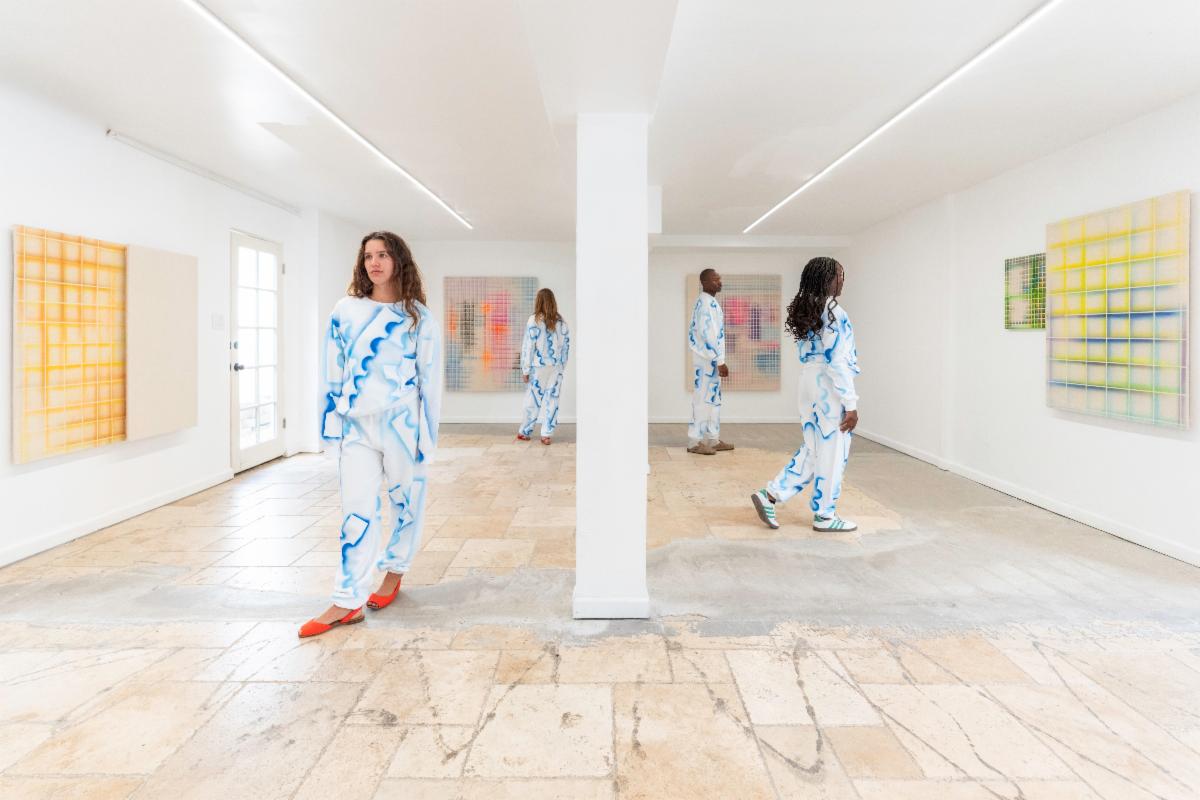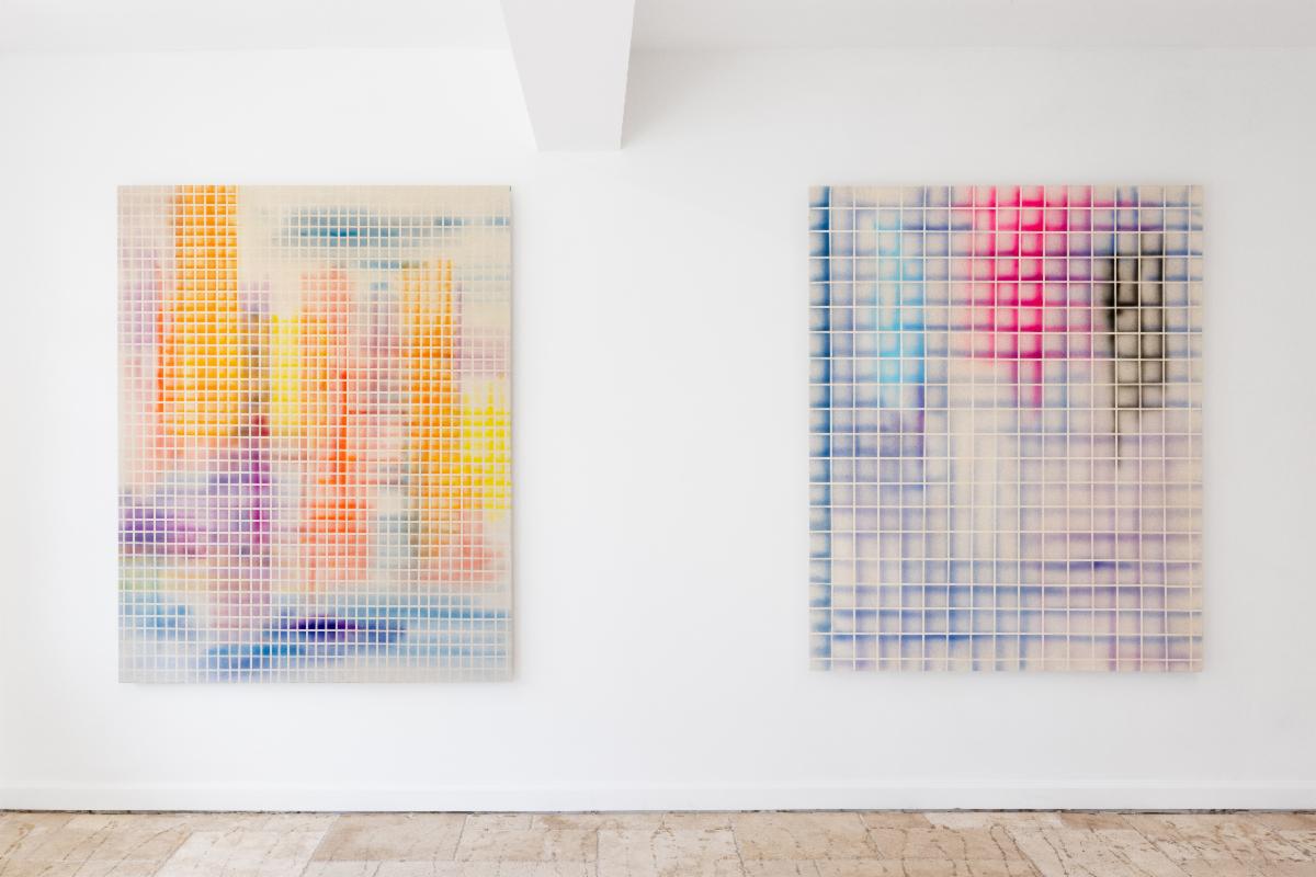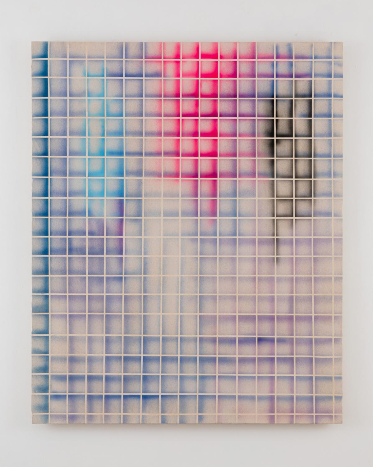 Bas Louter makes drawings, paintings and clothing using spray paint. The repetitive and mechanical nature of his work seems to echo the industrial and mechanized features of a colossal city, a place where memory is erased and movement and failure are in a constant cycle.