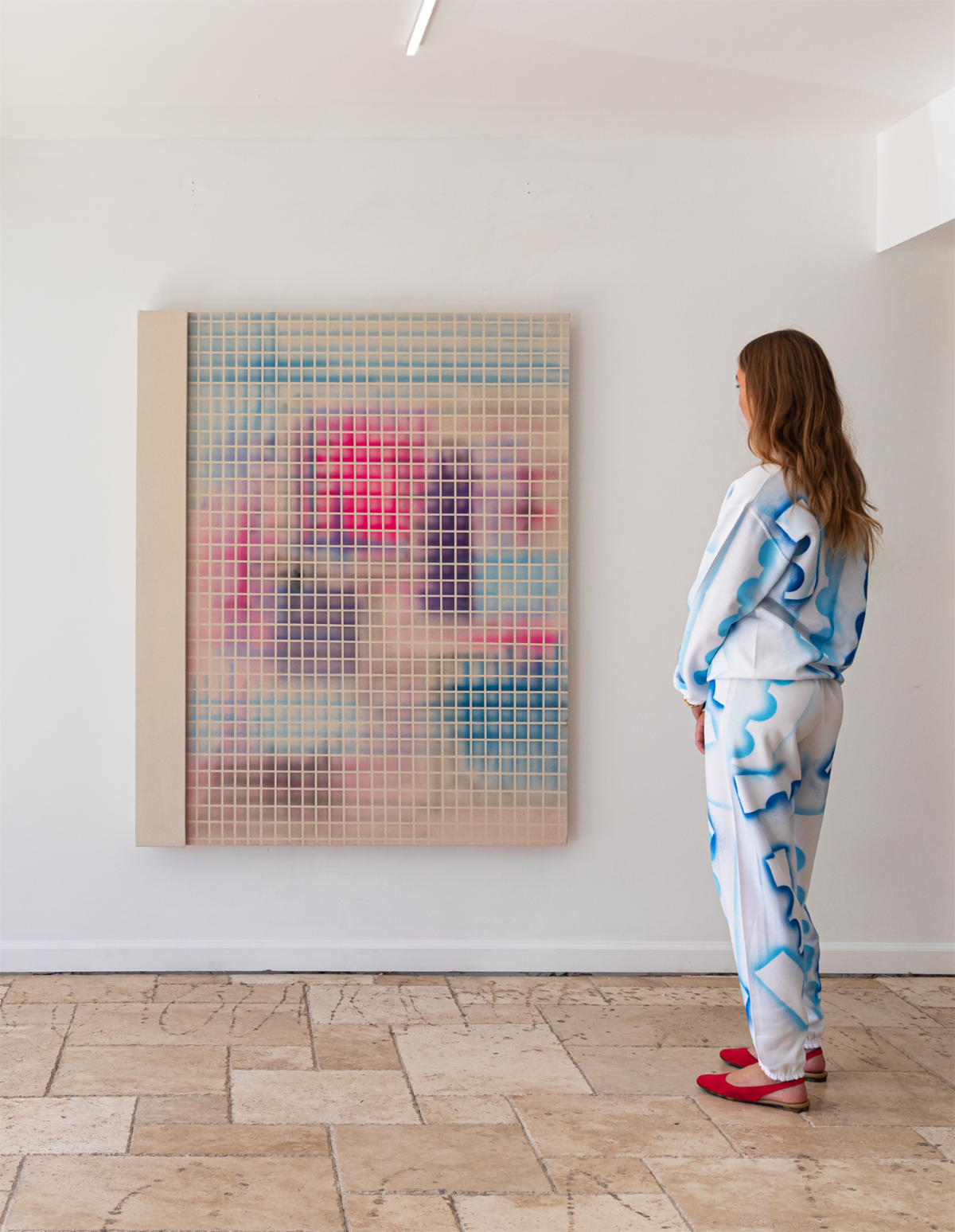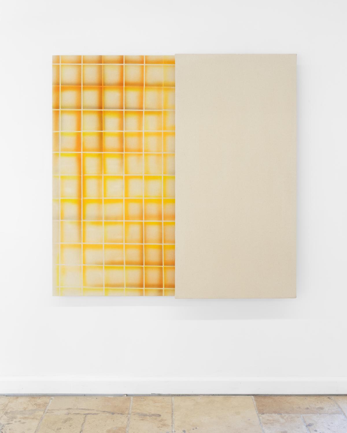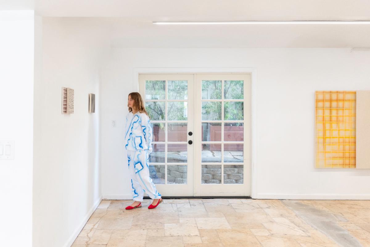 Bas Louter makes drawings, paintings and clothing using spray paint. The repetitive and mechanical nature of his work seems to echo the industrial and mechanized features of a colossal city, a place where memory is erased and movement and failure are in a constant cycle.