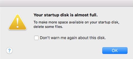 How to handle it? Delete files and then empty the trash. Check your DOWNLOADS folder – there are probably of plenty of no longer needed files in there, including installers. Drag those into the trash and then empty the trash. And NEVER click the "Don't warm me again about this disk!"