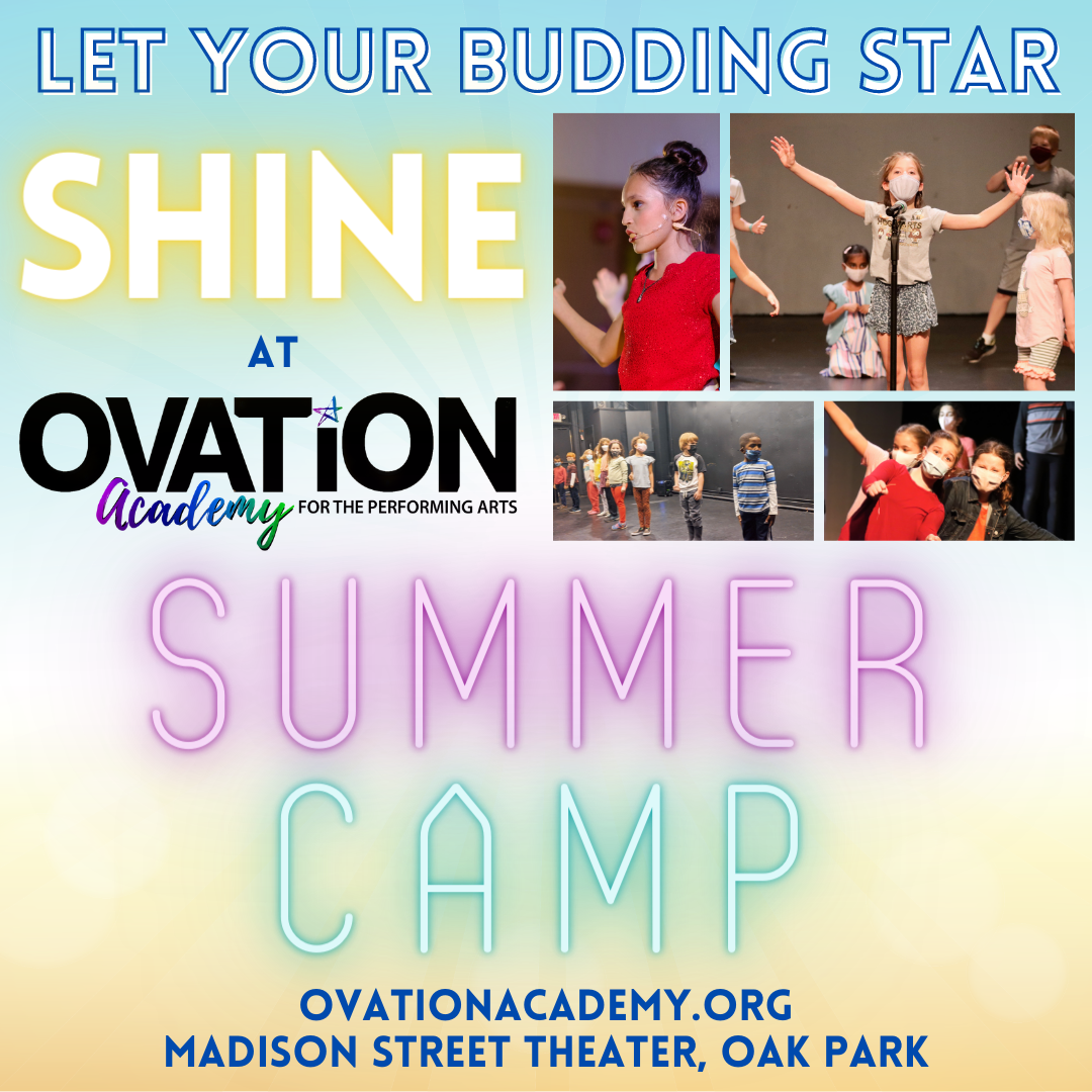Ovation Academy presents Summer Camp Ovation proudly offers both 1-week and 2-week camps for kids age 5-14, starting June 13 and running until August 20. Each camp includes singing, dancing, and acting and culminates in a fully produced, ticketed show. Registration Starts February 1st