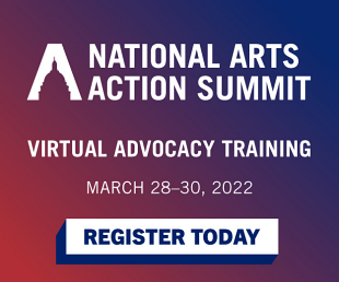 Join us virtually from March 28-30, 2022, for three days of networking with other arts advocates from across the country, deep-dive conversations about how to work more effectively together in advocating for arts funding, and training on how to make your voice heard on Capitol Hill. By uniting together in solidarity, we can make sure that art has a seat at the table. Registration to the event is free. Register here.