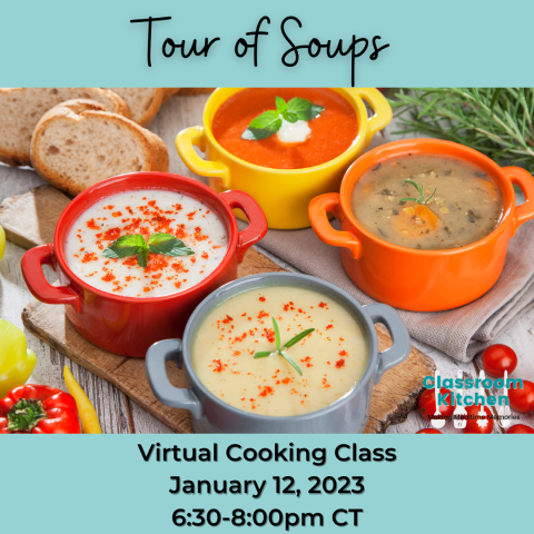 The Oak Park Public Library presents VIRTUAL: Classroom Kitchen Series: Tour of Soups 6:30-8:00 PM