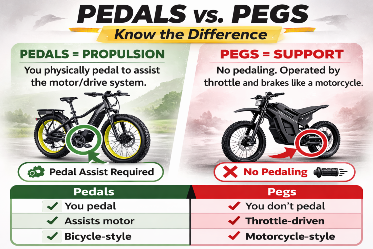 Type 2: Max speed of 20 mph with pedal assist and throttle, allowing operation without pedaling.