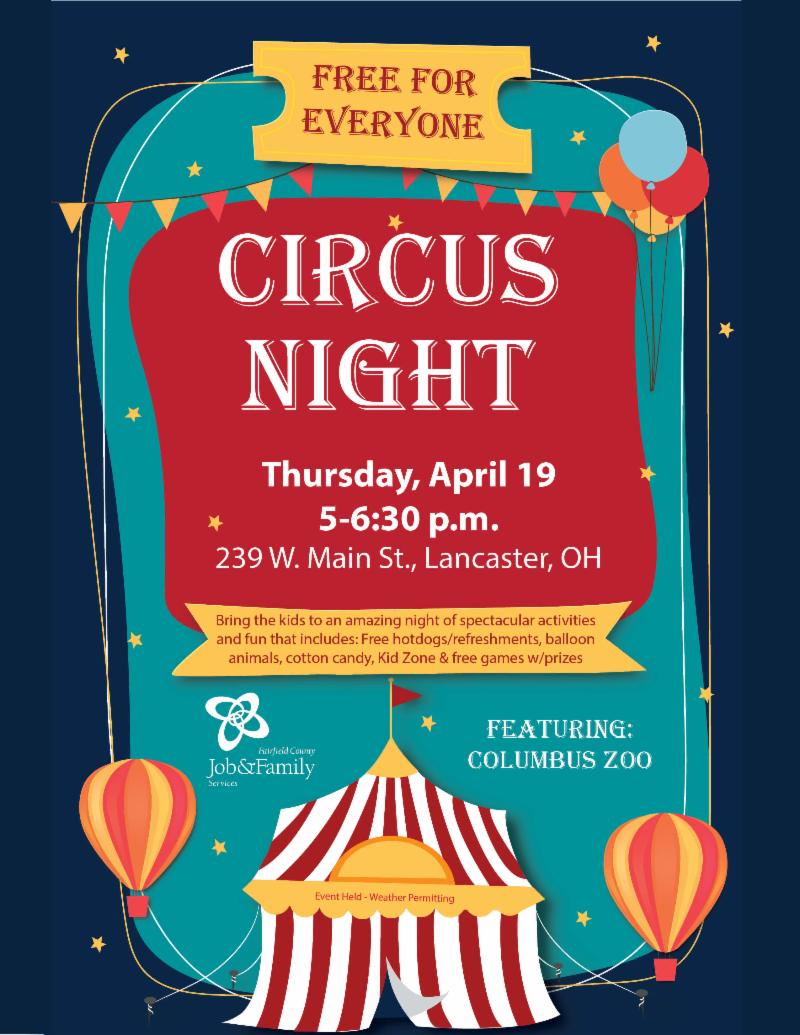 As an initiative to recognize Child Abuse Prevention Month in April, FCJFS will once again hold our Annual Circus Night to provide families with free food, and an opportunity to play games and win prizes. The event provides safe, family fun while emphasizing the importance of preventing abuse and neglect of children. See flyer below.