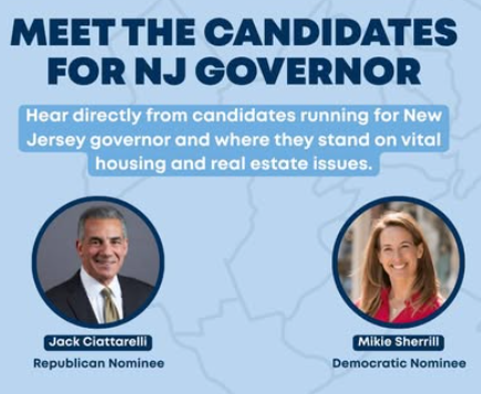 Hear from the candidates, Republican Jack Ciattarelli and Democrat Mikie Sherrill, running for the office of New Jersey governor and discover their stance on issues vital to the real estate industry. Register here.