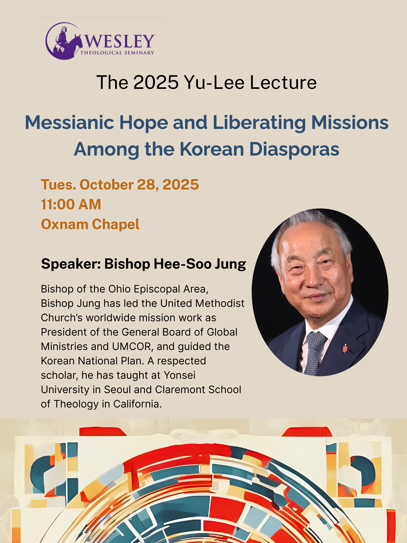 | | Wesley Theological Seminary invites you to the Yu-Lee Lecture on Tuesday, October 28, at 11 a.m. in Oxnam Chapel. This lecture celebrates the contributions of the Asian American community. This year’s speaker, Bishop Hee-Soo Jung, Bishop of the Ohio Episcopal Area, will deliver a lecture titled “Messianic Hope and Liberating Missions Among the Korean Diasporas.” Download the flyer. | | In Case You Missed It (ICYMI) | |