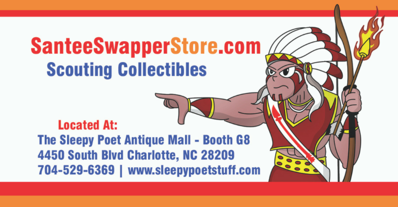 In Charlotte, North Carolina I have an antique mall booth that is filled with nothing but Scouting stuff. I call this location my clearance center because I've marked down everything to move. A lot of what you will find there are items that are too bulky to easily ship from an Internet store. The booth is located in The Sleepy Poet which is a well established antique mall on South Blvd in Charlotte. The mall is open 7-days/week year round. So the next time you are in the area come check it out.