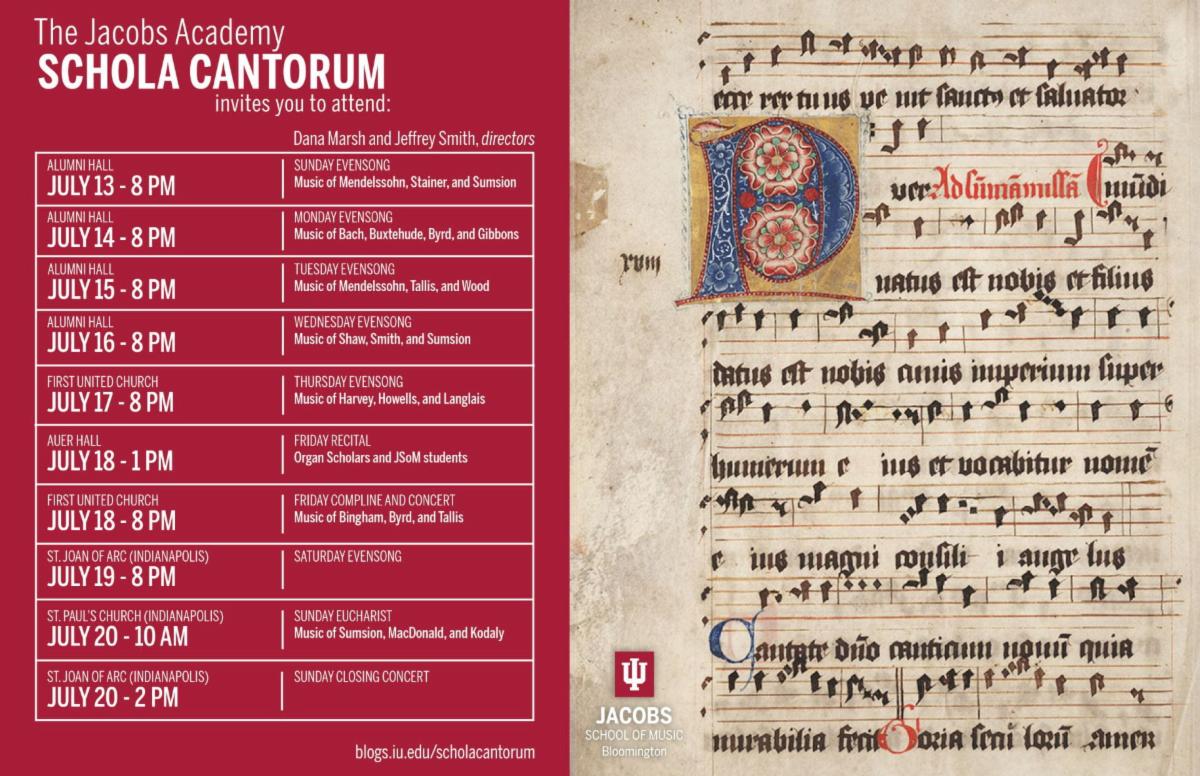 During 10 a.m. worship on July 20, St. Paul's Indy welcomes singers from the Jacobs Academy Schola Cantorum from Indiana University’s Jacobs School of Music. This select group of 25 singers come from all across the country to spend a week on the IU campus under the direction of Dr. Jeffrey Smith and Dr. Dana Marsh, each day culminating in a choral service. Jeffrey is a familiar face to St. Paul’s, as he subbed for Brad Hughley during his spring 2023 sabbatical. On their final day in Indianapolis, The Schola Cantorum will start with a choral mass at St. Paul’s, followed by a 2 p.m. concert that day at St. Joan of Arc Catholic Church. Click below to learn more: