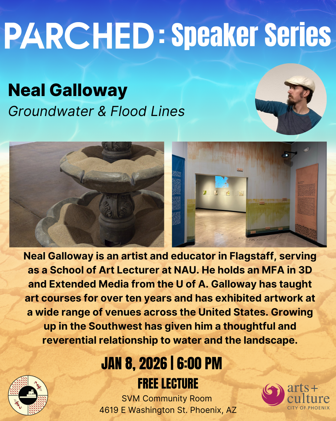 Join us on January 8, 2026, at 6pm in the S’edav Va’aki Community Room for a very special guest lecture featuring Neal Galloway, the artist behind Ground Water and Flood Lines.