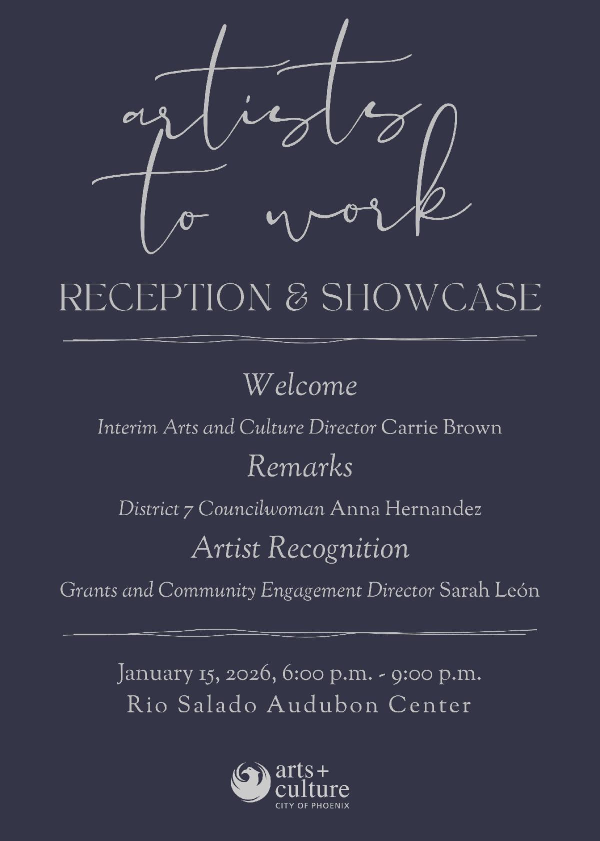 2026 Artists to Work Reception and Showcase