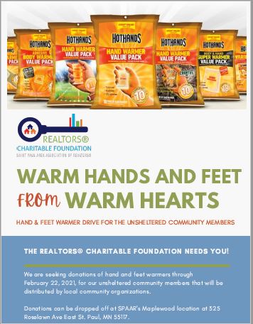 Join SPAAR's REALTORS® Charitable Foundation in collecting hand and feet warmers that will be donated to unsheltered members in our communities.