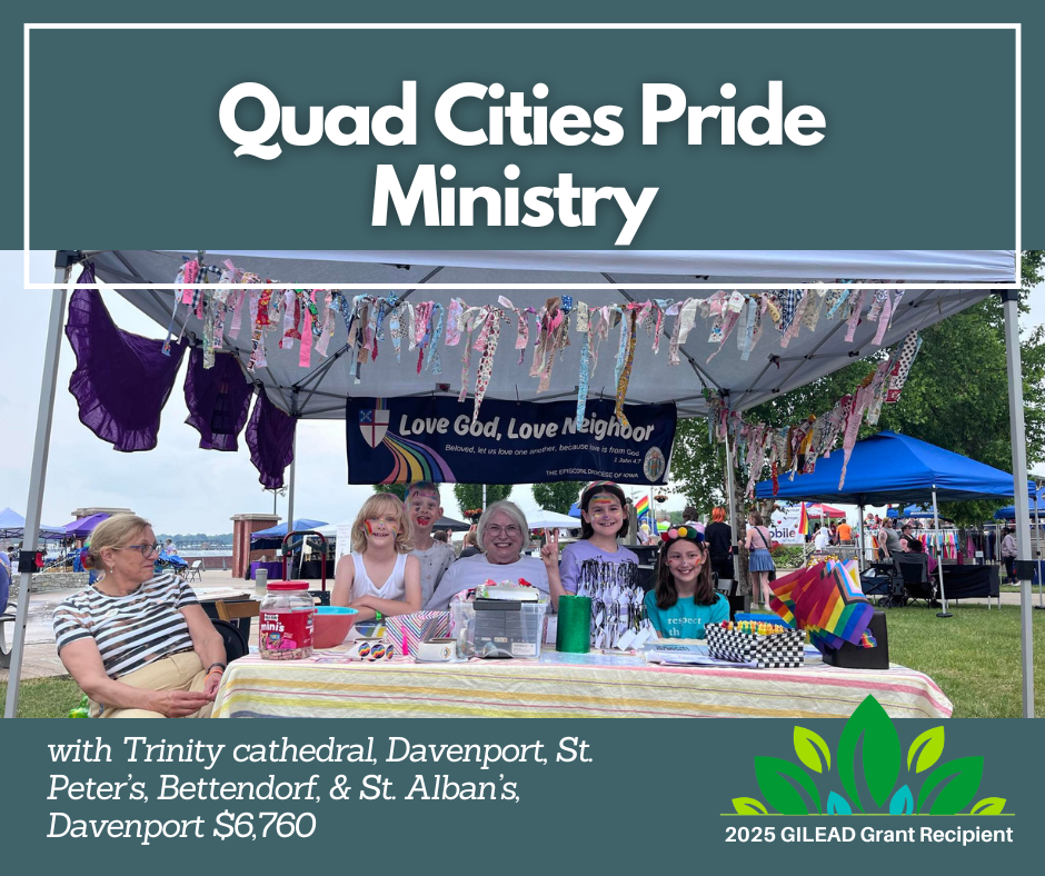 The purpose of our ministry is to create safe and welcoming spaces in our churches and community for LGBTQ+ people and bearing authentic public witness to the loving, liberating, life-giving God that we follow. Our LGBTQ+ ministry is primarily designed to support and serve the LGBTQ+ community in the Quad Cities through education, allyship, and demonstrations of love, and it unites the Episcopal congregations in the Iowa Quad Cities with a common mission and supports/ sustains being safe and affirming places of worship. We plan to grow this ministry which includes partnerships with St. Alban’s Davenport and St. Peter’s Bettendorf. Grant funds are being used to support an extended presence at QC Pridefest and for educational and training opportunities, including an honorarium and travel for a guest speaker.