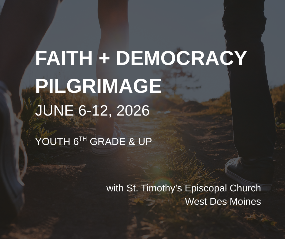 Youth currently in 6th grade on up are invited to join this pilgrimage June 6-12th to Philadelphia and New York. We'll explore topics like the intersection of faith and civic life at the country’s founding and the role faith should play in a pluralistic democracy today. All diocesan youth are welcome. Hosted by St. Timothy's, West Des Moines; contact Kelli to register.