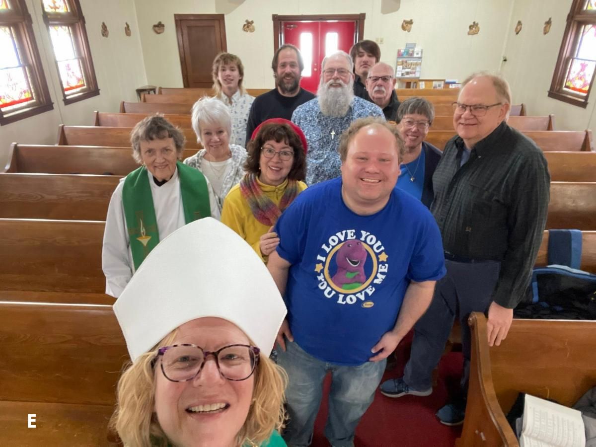 Photos: (A) Interfaith clergy gathered before the prayer service in Minneapolis, MN, (B) Youth Ski Trip 2026; Bishop's visitations with (C) St. James', Independence, (D) Christ Church, Clinton, (E) St. Thomas', Algona. | |