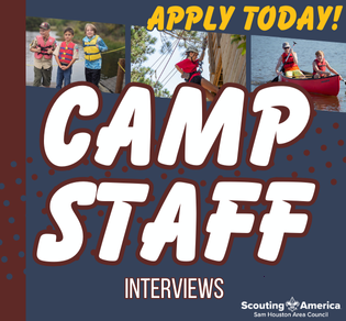 The council has an opportunity each year to provide Scouts and Scouters who attend our camps with a great camping experience. We are looking for dedicated individuals to apply to be on staff for summer camp at Camp Strake. The requirements are stiff, the jobs are demanding, and the experience is exhilarating. Must be at least 16 years of age during camp (youth ages 15 can serve as a counselor-in-training). Submit your application today! We are having an in-person interview day on January 24th which requires sign-up and will be opening soon. Complete your Summer Camp Staff application today!
