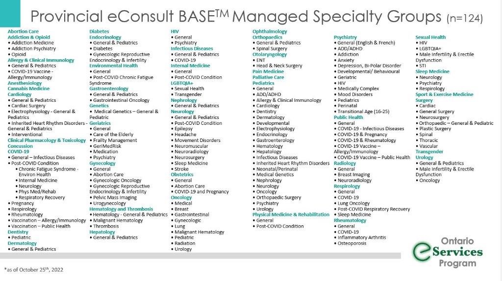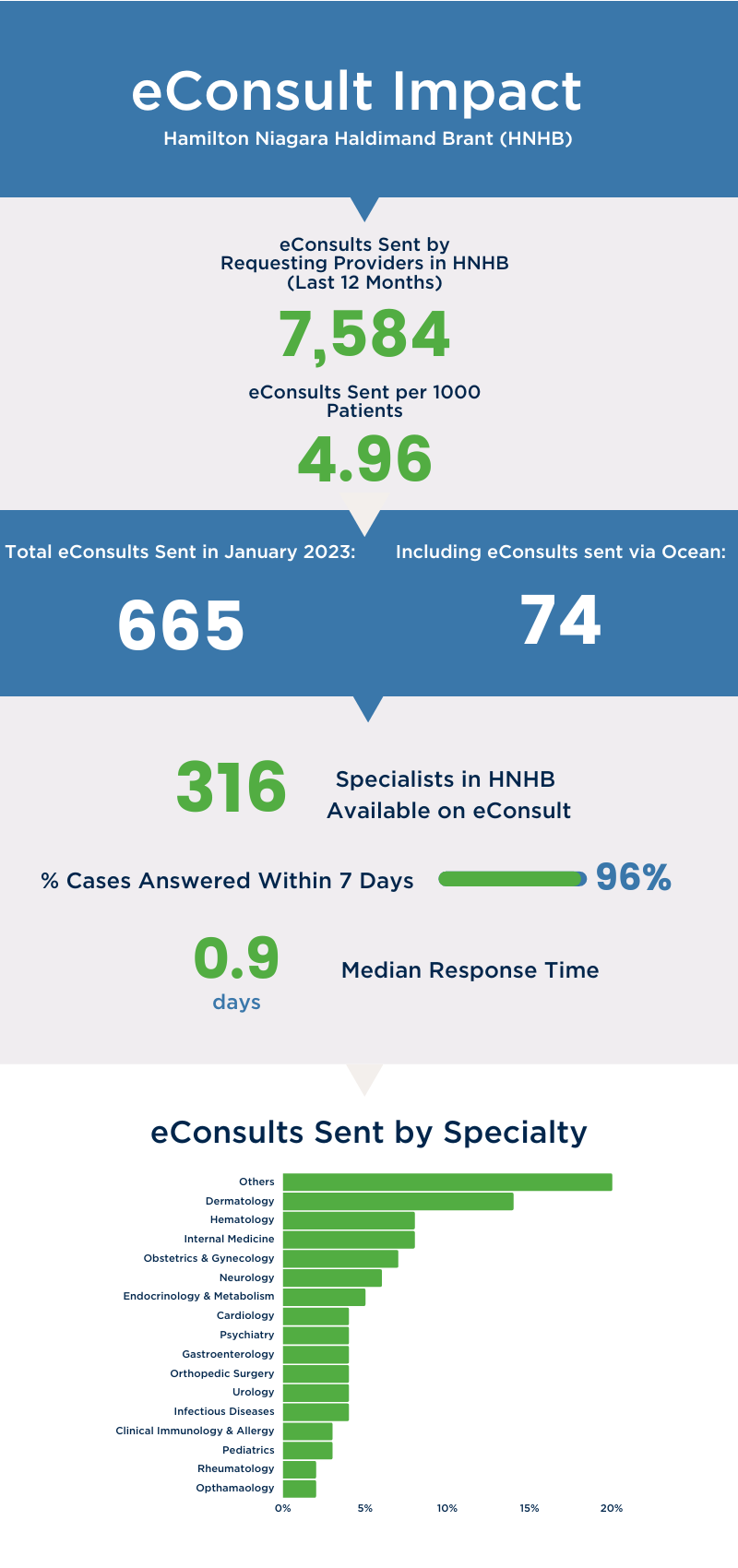Data as of January 2023. This data has been reproduced with permission from the Ontario eConsult Centre of Excellence. For more information, please contact eConsult@HITSeHealth.ca.
