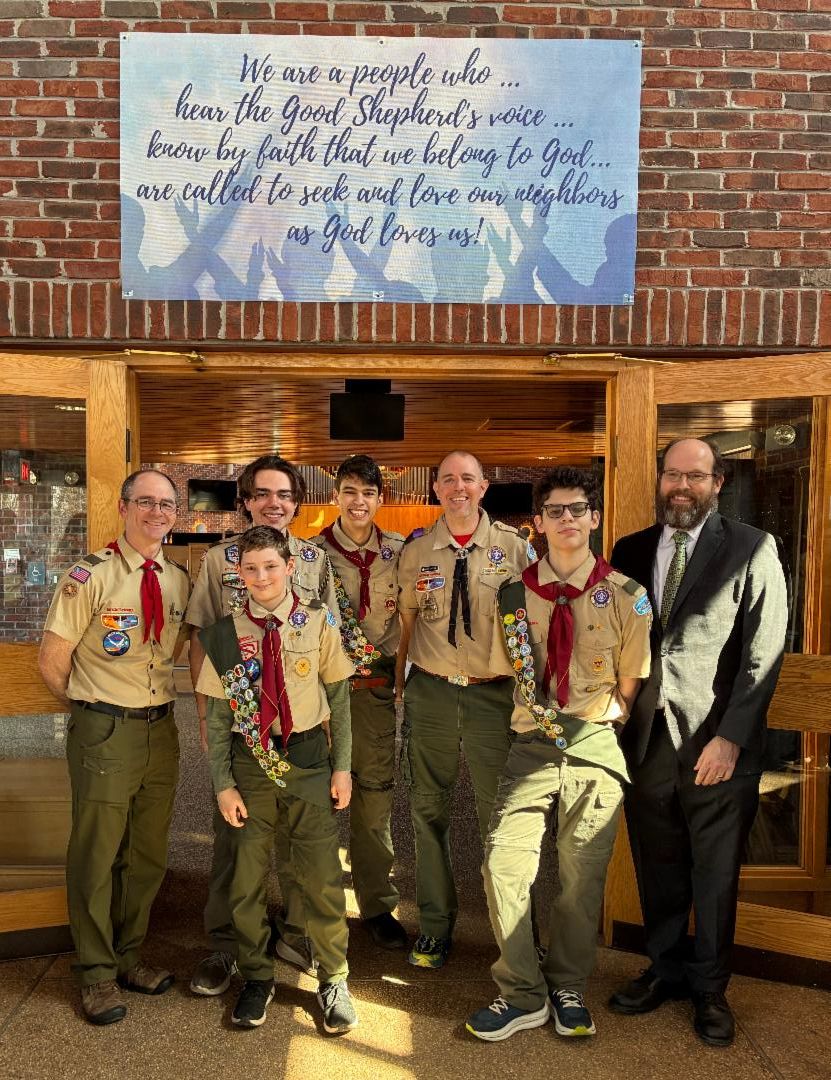 Troop 97 Boy Scouts at Good Shepherd! The Boy Scouts came to Good Shepherd last Sunday, March 1st and helped Greet with Gusto (opening doors wide with bulletins in hand!!) and Usher. Thanks to Diane for showing them the "ropes" for ushering; they did a terrific job!! They also brought coffee and donuts for a wonderful coffee hour afterwards!! We love our Boy Scout Troop 97!!!!