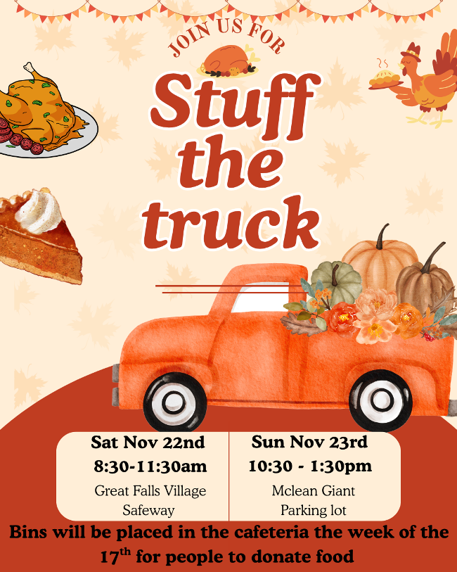 Langley Leadership is holding a Stuff the Truck food drive! From Nov 17–21, donation bins will be available at Langley HS for canned goods, dry food, and other non-perishable items.